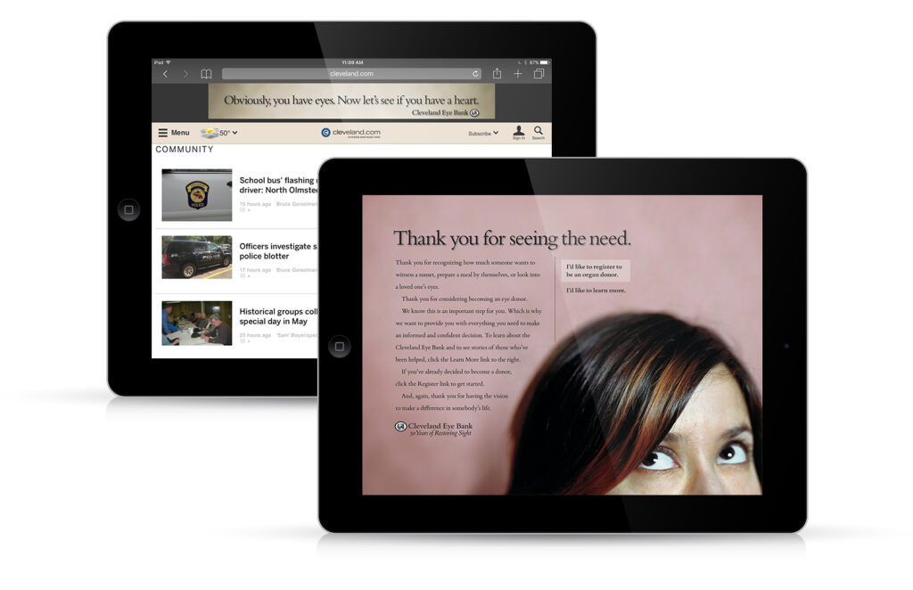 Unlike many non-profits, the Cleveland Eye Bank was not looking first and foremost for donations. What was more important on this occasion, their 50th anniversary, was to remind us of the critical role sight plays in our everyday lives and to encourage us all to take good care of our eyes, so we never need their services. And then, donations are always welcome, too.