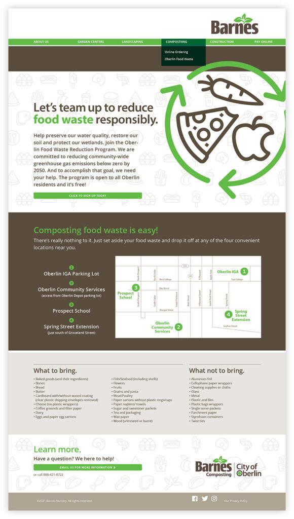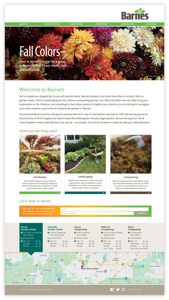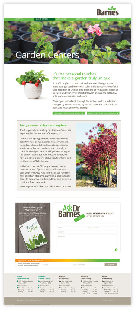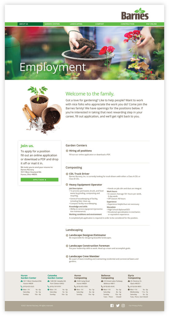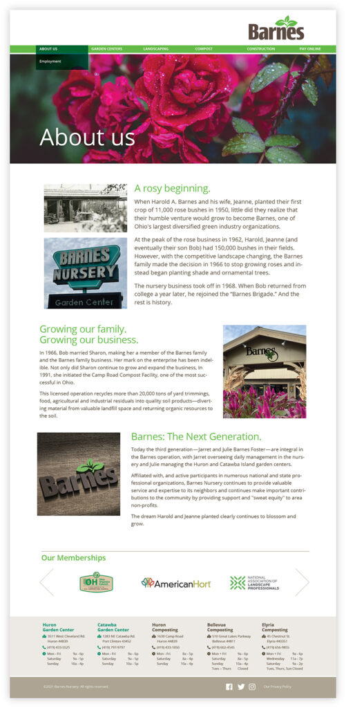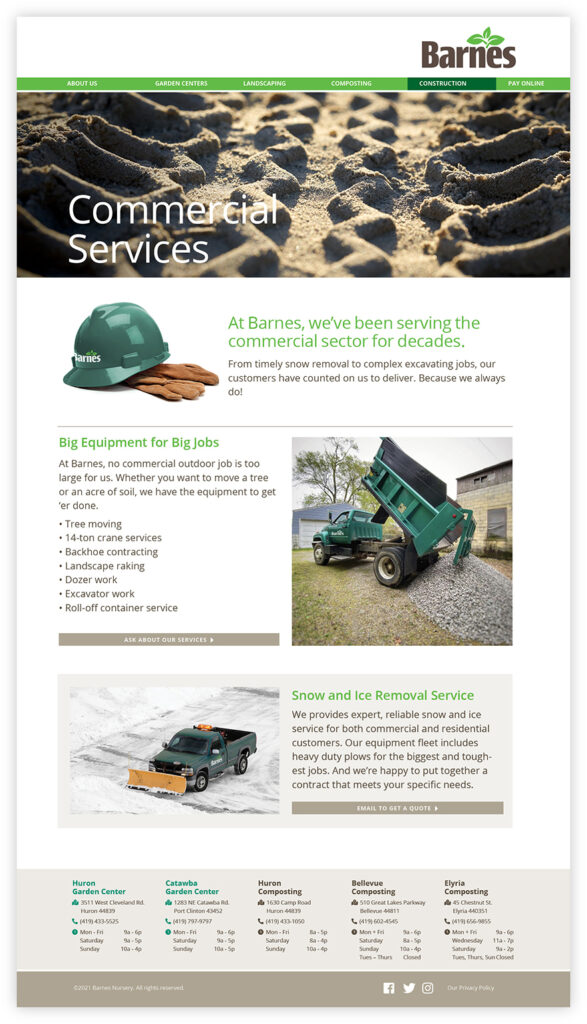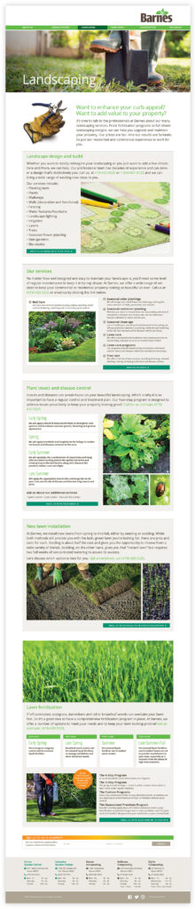 A new brand identity requires a new website. One that makes it easy for residential, commercial and municipal visitors to all find their way. To see the website, go to barnesnursery.com. To see the complete Barnes rebrand, click the Go to Project button.